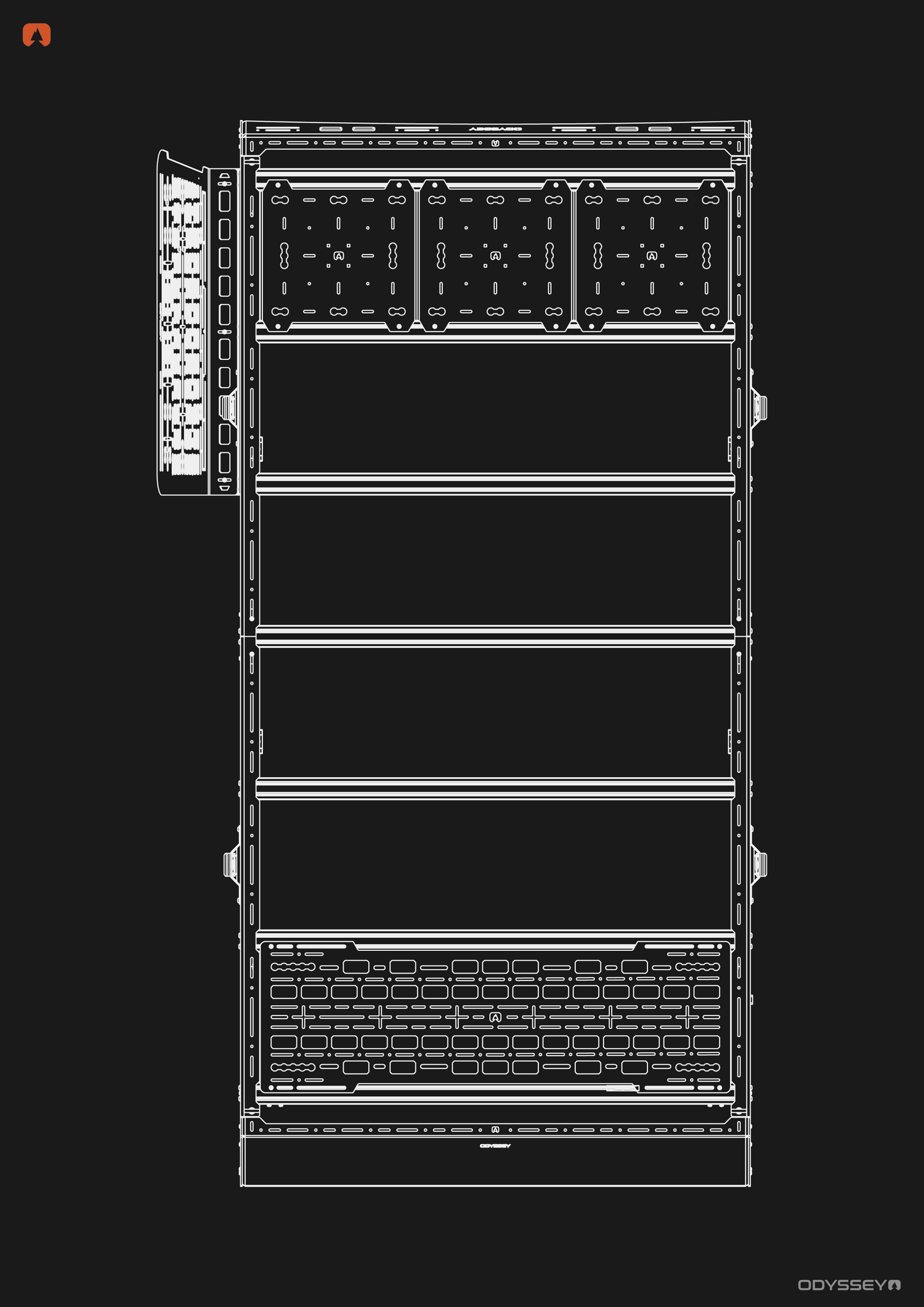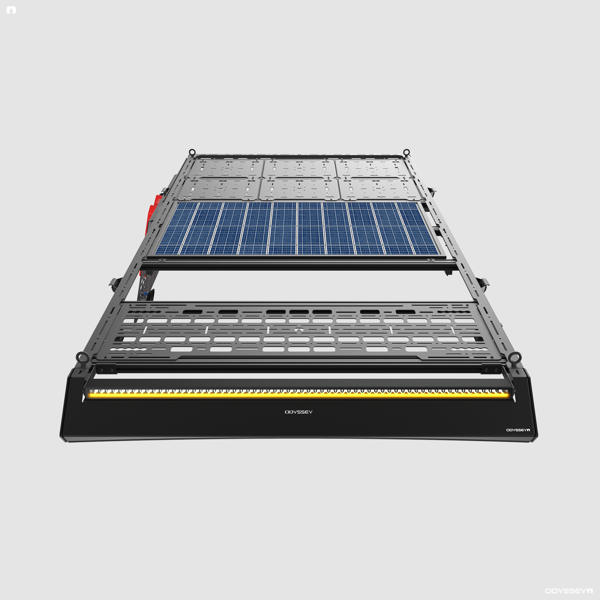Positioned as our best-selling mid-tier system, the Expedition Rack offers a step up in features and flexibility while retaining the clean, streamlined form Odyssey is known for. It comes equipped with key upgrades such as the Adventure Molle Panel and Utility Side Molle Panel as standard, giving you enhanced mounting options straight out of the box-perfect for recovery gear, storage solutions, and modular overland accessories.